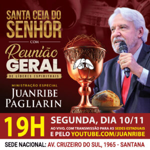 E à noite, às 19h, todos os obreiros, líderes, evangelistas e pastores da Comunidade Cristã Paz e Vida estão convocados para participar da Reunião Geral de Líderes e Obreiros com Santa Ceia, transmitida diretamente da Sede Nacional, em São Paulo.