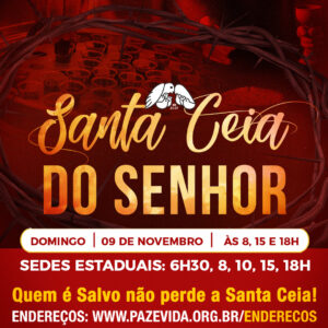 Hoje, em todas as unidades da Paz e Vida no Brasil e em Portugal, realizaremos a Santa Ceia do Senhor — um encontro de fé, oração e poder espiritual, com intercessão especial por cada família.
