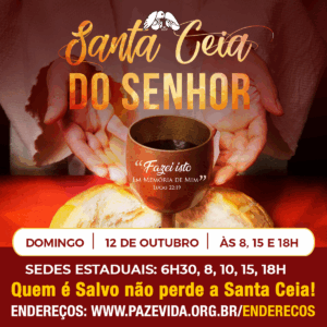 Local: Sede Nacional da Paz e Vida – Av. Cruzeiro do Sul, 1965 (ao lado da Estação de Metrô Portuguesa-Tietê)