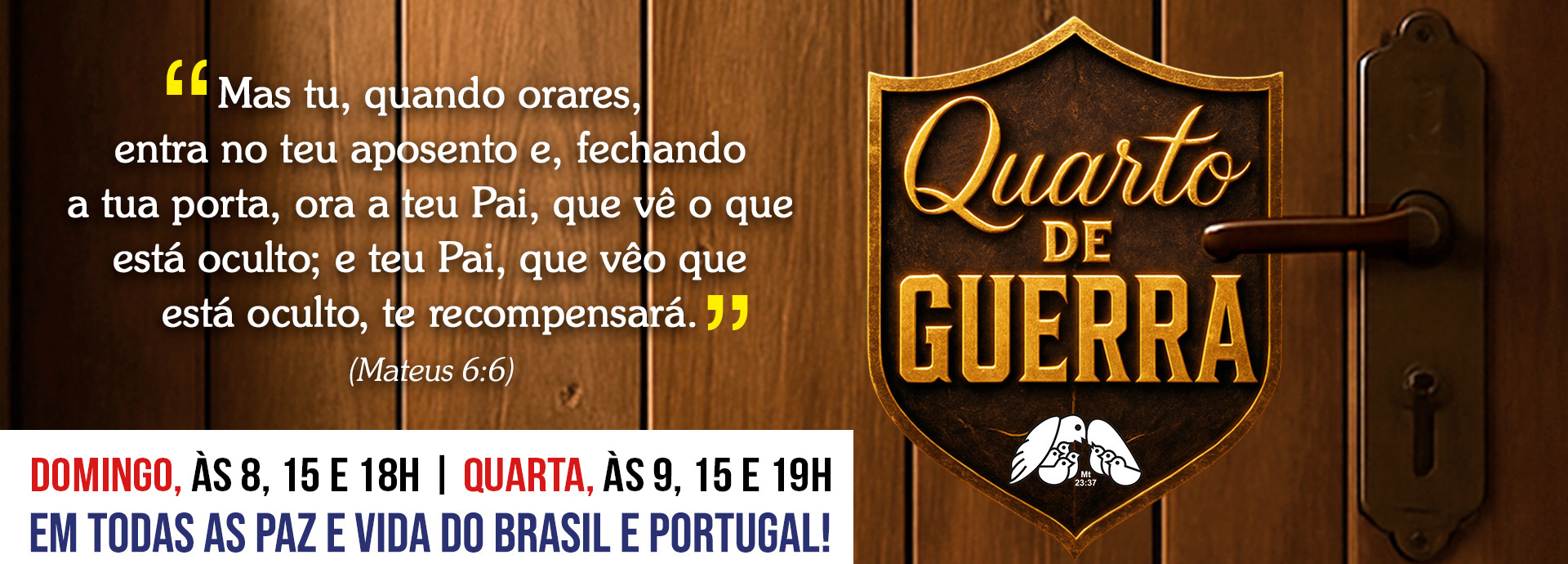Você já sentiu que precisa de um tempo para renovar suas forças, encontrar direção e recomeçar com esperança? Hoje, na Sede Nacional da Paz e Vida, você tem a oportunidade de viver uma experiência transformadora com Deus na Campanha Quarto de Guerra.