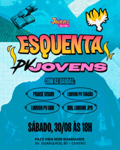 Hoje, às 18h, a Sede Regional da Paz e Vida em Guarulhos abre as portas para uma noite que promete marcar vidas de forma única. Será um tempo especial de louvor, adoração e profunda experiência na presença de Deus.