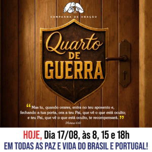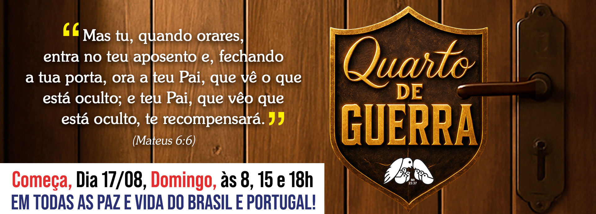 Nos dias 17 de agosto (domingo) e 20 de agosto (quarta-feira), todas as unidades da Paz e Vida darão início à Campanha de Oração: Quarto de Guerra.
