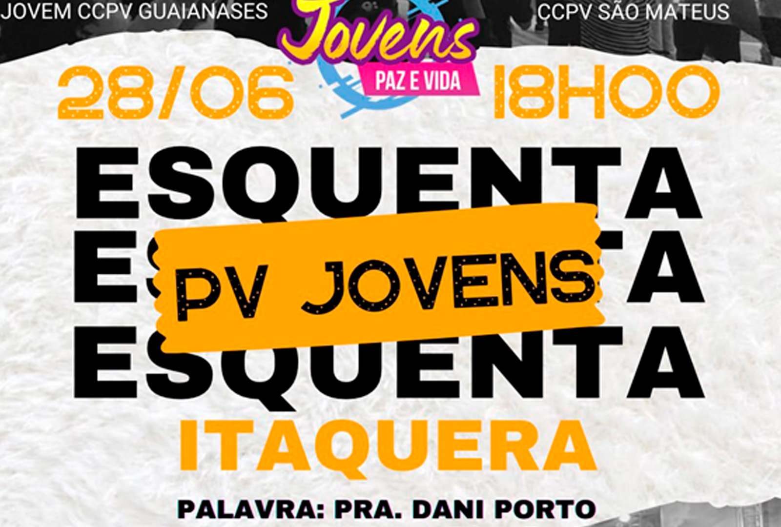 Estarão conosco a Pastora Dani Porto, a cantora Jéssica Marques e banda, as Bandas da Paz e Vida de Itaquera e São Miguel, o Coral Jovem de Guaianases e diversos ministérios de dança. Jovens de toda a Zona Leste — Guaianases, São Mateus, São Miguel, Itaquera e da Sede Nacional — estarão reunidos para celebrar e buscar mais de Deus.