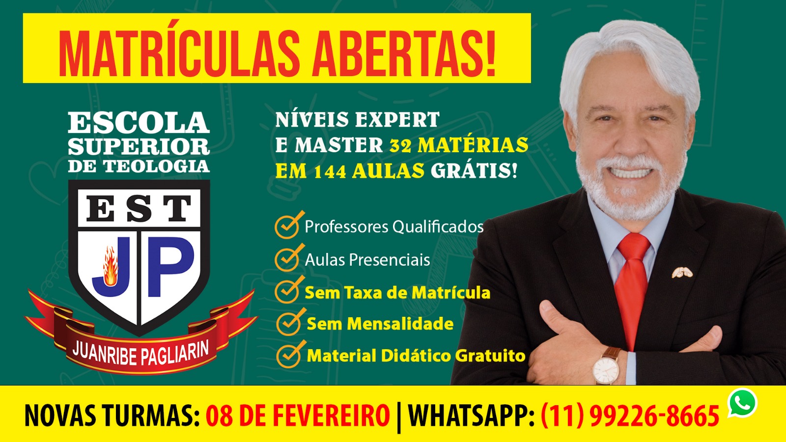 Última Chamada: Garanta a sua vaga no Curso Livre e Gratuito de Teologia na Escola Superior de Teologia Juanribe Pagliarin